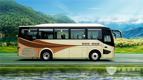 该车采用第四代全承载技术+整车骨架高强度钢,更轻量更安全,让乘客安心直达目的地,同时框架式三段式车架+超大行李舱,轻松装纳出游行李,长轴距设计也大大提升了运载效率,让乘客惬意看风景,享受身心那份宁静与愉悦。