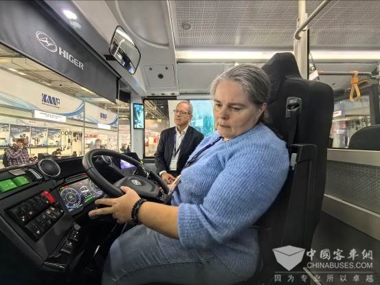 拥有10余年驾驶经验的德国资深公交司机安通尼娅女士在登车体验了Azure7之后表示,她之前开过奔驰、MAN、沃尔沃的公交,从12米到21米,这款设计新颖的迷你巴士所采用的独立驾驶区,操纵舒适便捷的独立表头设计都让她感到欣喜。她非常期待这款车能够早日在自己所在的地区运营,她很看好这款车未来的市场表现。