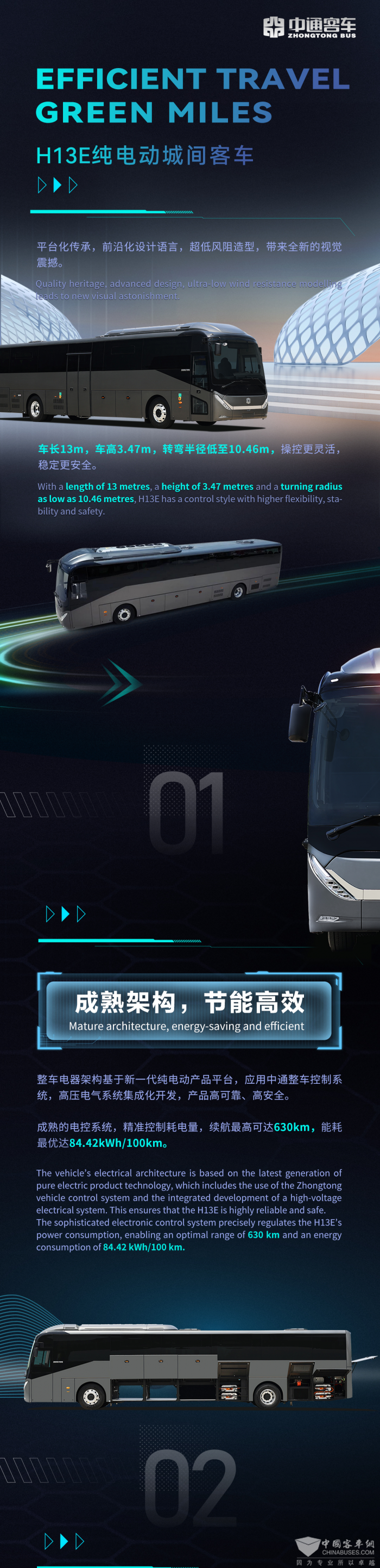 绿动全球:一图读懂中通H13E纯电动城间客车
