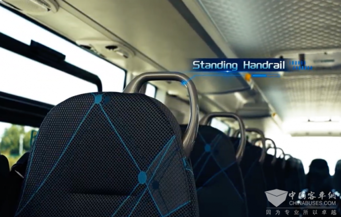 车内中央通道宽度达到460mm,行人可轻松通过。每个通道座椅上方都配有站立扶手,宽大顺手,增加了乘客的乘车安全性。