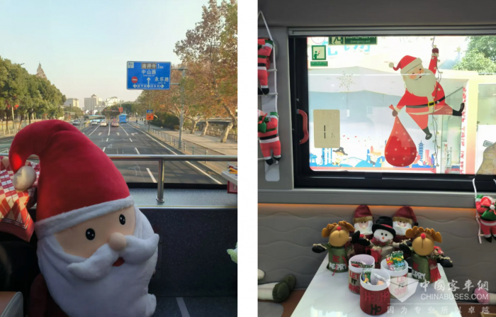 随着圣诞节临近,换上新装的“圣诞巴士”闪亮登场。双层巴士被精心装扮成梦幻的圣诞世界,精致的雪花挂件、可爱的圣诞老人玩偶,让乘客仿佛置身于童话世界。