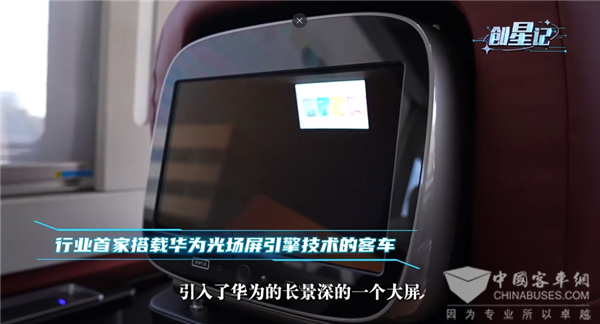 “这是行业首家搭载华为光场屏引擎技术的客车,传统车载屏幕容易引发晕车,我们用光场屏通过光学技术突破。”苏州金龙技术中心市场调研室主管刘通告诉记者,“眼前这块光场屏可以突破车内物理空间的限制,实现在10英寸物理屏上呈现35英寸大画幅的效果,视距延伸至3米,大大缓解了乘客晕车、眩晕和用眼疲劳等问题。”