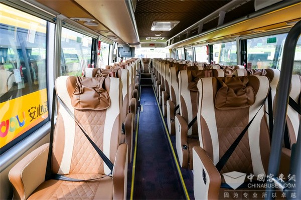 此次交付的金龙纯电动客车集环保、智能、舒适于一体,将成为大理旅游交通的“崭新名片”。车辆采用前沿新能源技术,适配景区高频次接驳需求,能耗较传统燃油客车显著降低。在安全性能方面,搭载360度环视监控、疲劳驾驶预警及自动紧急制动系统,全方位保障行车安全。此外,航空级座椅、分区独立空调、USB充电接口及遮光拉板等配置,进一步提升了乘客的舒适体验。