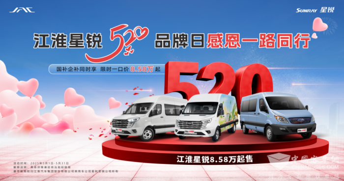 即日起至2025年5月31日,星锐超级品牌日,豪礼不停,巅峰钜惠,史无前例!再犹豫,优惠就走远了,心动不如行动,优惠福利抢起来,快咨询当地的江淮星锐经销商!