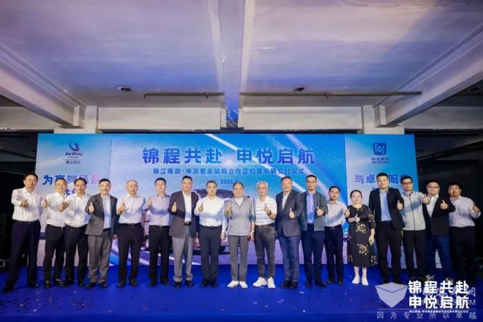 2025年6月10日上午,锦江商旅与申沃客车在锦江汽车吴中路总部举办“锦程共赴 申悦启航”战略合作签约暨车辆交付仪式。市旅客运输专业委员会、东湖汽车、久通商旅、锦勤汽车相关领导及合作伙伴代表出席本次活动,共同见证这一具有里程碑意义的时刻。