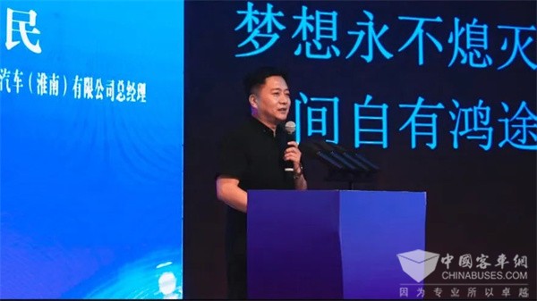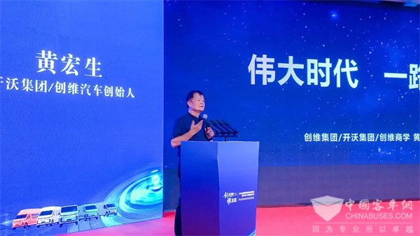 本次大会有幸邀请到了创维集团创始人、创维汽车创始人黄宏生,他对淮南市政府、供应链合作伙伴,以及淮南开沃基地的建设者们表达了诚挚的感谢。黄宏生先生在大会上发表了“伟大时代,一路鸿途”的演讲。
