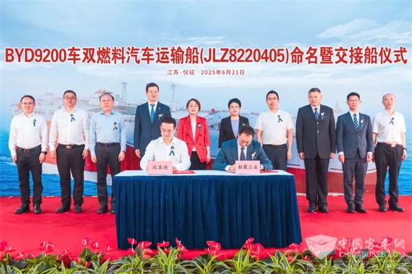 2025年6月21日,比亚迪第五艘汽车运输船“BYD XI’AN”在江苏仪征顺利交付,这是比亚迪全球化战略布局中的又一里程碑。值得一提的是,同样备受瞩目的“BYD CHANGSHA”也即将交船。比亚迪方程豹销售事业部总经理熊甜波女士出席并担任此次交船仪式的命名嘉宾。西安市委常委、西安高新区党工委书记马鲜萍女士,西安市工信局副局长孙远昆先生,仪征市市委书记孟德和先生,招商局集团副总经理邓仁杰先生,比亚迪集团执行副总裁兼乘用车首席运营官何志奇先生,比亚迪集团执行副总裁、汽车工程研究院院长廉玉波先生,比亚迪汽车售后服务事业部总经理高子开先生以及比亚迪对公事业部总经理王俊保先生等领导共同出席此次仪式。