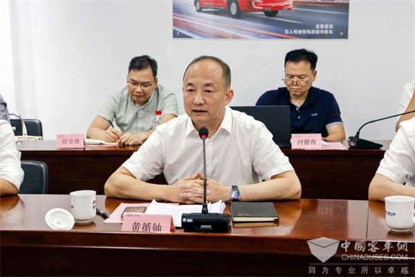 黄循铀对金龙汽车集团改革发展取得的成效表示肯定,他强调,一要坚定追求卓越,努力提升品牌价值。进一步统一思想、凝聚共识,时刻保持勇于创新、积极进取的精神风貌,对年度目标做到心中有数,以实实在在的拳头产品,筑牢品牌品质根基,推动高质量发展。二要强化顶层设计,夯实制度体系建设。从制度层面加强战略引领,营造价值创造导向,针对股权架构调整、干部业绩考核、员工激励保障等方面做好系统规划,通过制度刚性约束,促进管理和运营效率提升。三要做好前瞻布局,抢占行业领先地位。结合国家“双碳”目标和发展新质生产力等战略部署,聚焦主责主业,在巩固基本盘的基础上,加大科技创新力度,前瞻性拓展新赛道,培育特色优势业务,打造差异化竞争力。四要加快“三化”建设,构建协同管理体系。深化“大协同”理念,优化组织架构,改进管理模式,加快推进平台化、标准化、模块化建设,强化内部资源共享、互融互促,构建高效协同作战体系。五要打通信息壁垒,建设数据管控平台。大力推进信息化建设,加快打通集团系统内企业管理信息通道,以数字化、信息化赋能智慧管理,为科学有效决策提供强力支撑。六要强化党建引领,汇聚改革发展合力。以深入贯彻中央八项规定精神学习教育为契机,引导各级党员领导干部树立正确业绩观、权力观,严守廉洁底线,推动作风建设从“治标”向“治本”深化,以严实作风展现担当作为,为集团高质量发展凝聚更大力量。