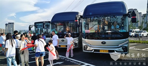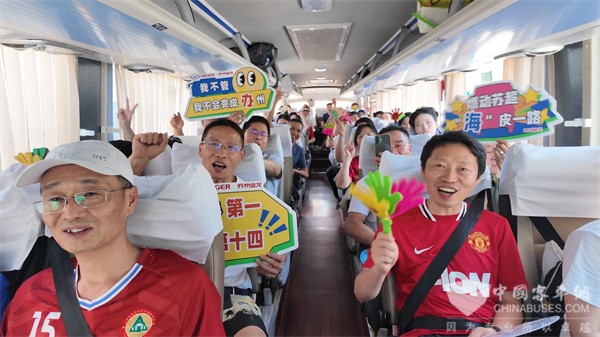 与苏汽集团常熟汽运同样选择苏州金龙新V系客车的企业还有太仓交运集团。本次赛事,太仓交运集团派出批量新V系客车接送球迷,并且为球迷们送上了各种应援物资,力求为球迷们打造舒适、温馨的观赛氛围。太仓交运集团定制客运公司负责人孙涛表示,“为了护航本次‘苏超’比赛,太仓交运集团提前做足了功课。我们提前建立了微信粉丝群,并且优选了我们最新采购的新V系客车,尽全力为球迷乘客们提供极致舒适的观赛体验。”