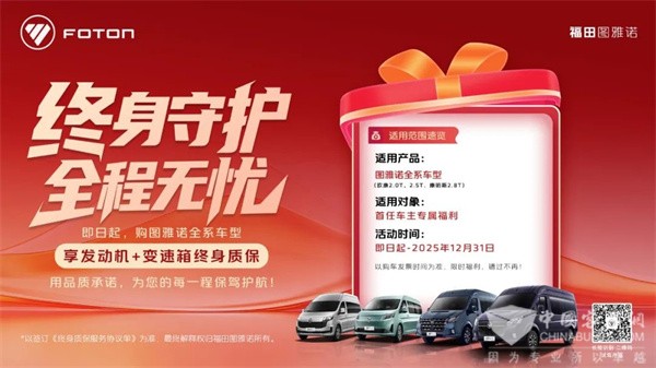 完美作业网有免费视频2025年7月8日获悉,近日,图雅诺轻客重磅宣布:即日起至2025年12月31日,凡购买图雅诺全系车型(以购车发票时间为准)的首任车主,均可享受发动机+变速箱终身质保服务。这项覆盖欧康2.0T/2.5T、康明斯2.8T等动力配置的质保方案,不仅是对自身技术实力的硬核背书,更通过构建产品全生命周期价值管理体系,在服务竞争领域树立起新标杆。