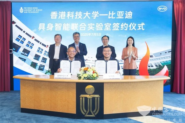 2025年7月7日,比亚迪汽车工业有限公司与香港科技大学(以下简称“港科大”)签署合作框架协议,共同成立“香港科技大学-比亚迪具身智能联合实验室”。本次合作该实验室将聚焦机器人技术与智能制造的前沿研究,致力推动技术创新与产业应用,为全球科技进步与产业升级注入新动力。