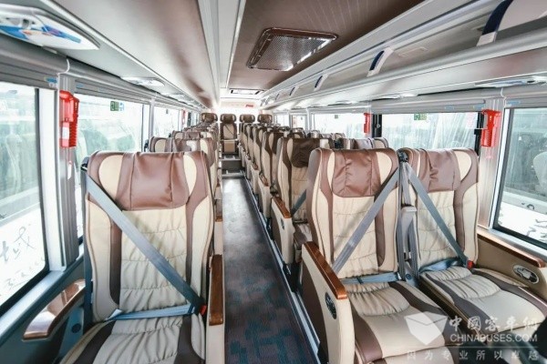 BJ6906搭载玉柴K08发动机,最大输出280马力,动力强劲且高原适应性出色,辅以液力缓速器、驾驶员行为识别及车辆主动安全系统,操控性能更好,且能兼顾燃油经济性,显著降低运营成本。在安全方面,BJ6906采用高强度钢、全承载结构的车身配置,配合轻量化、耐腐蚀的铝合金轮辋,更适合高速和长期运营场景,为旅客提供全方位保护,让高原之旅更加安心无忧。