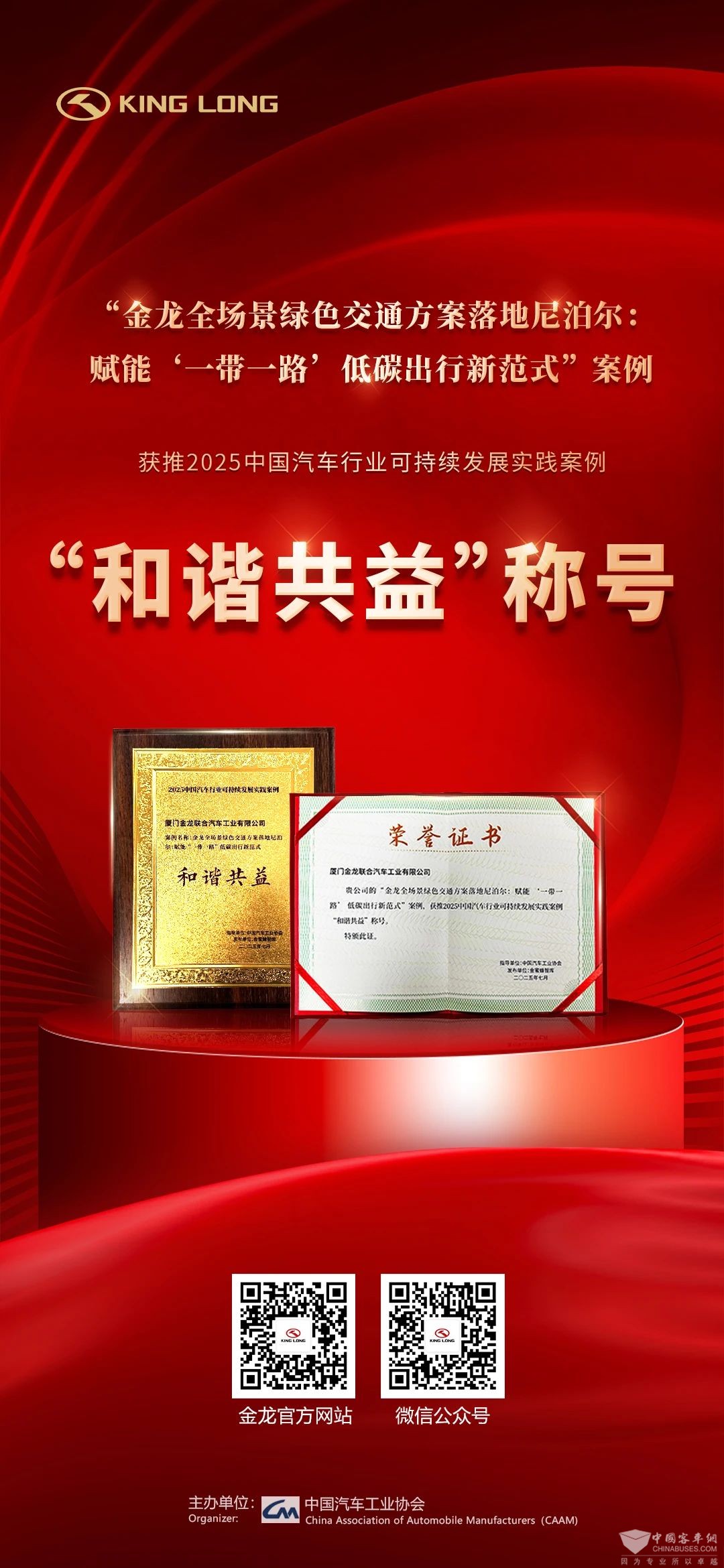 完美作业网有免费视频2025年7月18日讯——近日,2025中国汽车行业可持续发展实践案例正式发布,38家企业45个案例入选。其中,厦门金龙联合汽车工业有限公司(简称“金龙”)凭借“金龙全场景绿色交通方案落地尼泊尔:赋能‘一带一路’低碳出行新范式”案例,获推2025中国汽车行业可持续发展实践案例“和谐共益”称号,彰显了金龙在绿色交通领域的卓越贡献。
