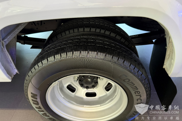 车辆采用前通风盘后盘的制动形式,双胎车型的前后轮均为固特异195/75R16LT型轮胎。