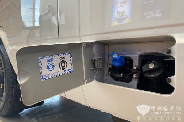 加油口在车辆的左侧,柴油和尿素箱盖用黑色与蓝色加以区分。