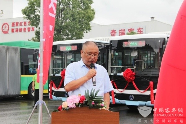 奇瑞万达贵州客车股份有限公司运营总监吴选平总在致辞中表示:这不仅是一次产品的交付,更是双方携手践行绿色发展、助力“电动贵州”战略的重要里程碑!交付只是服务的起点。奇瑞万达将始终以“客户至上、品质为先、服务为本”为宗旨,组建专业团队,提供全生命周期保障,确保车辆安全、稳定、高效运营,为新区公交事业保驾护航。