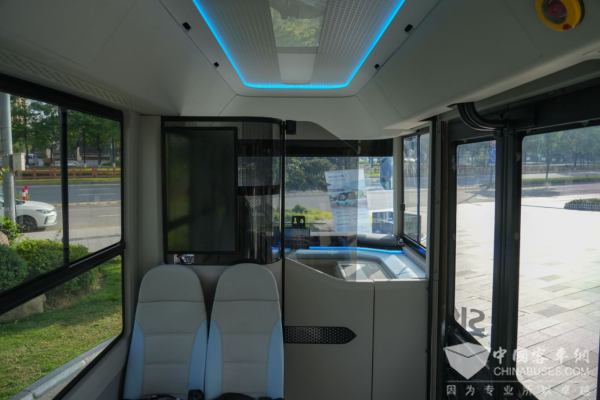 从踏入车厢的瞬间开始,乘客就能感受到设计师对空间利用率的追求。创维“都市精灵”以5445mm的车身长度,通过创新的空间设计,实现了堪比6米级巴士的空间利用率。展现了“空间折叠”设计的精妙之处。一阶踏步低地板,踏步高度不到340mm,老人孩子平地板区>5.3m²的布局打破传统低地板公交的空间设计桎梏,12+1的最大座位数刷新了同级别车型的座位纪录。
