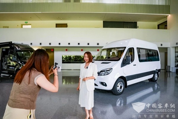 7月28日,媒体品鉴团来到宇通房车营地,通过沉浸式场景体验,进一步探索天骏V6E的运营适配性。在蓝天白云的自然环境中,天骏V6E的灵活性和舒适性愈发凸显,媒体品鉴团纷纷举起设备,记录这款“既能扛生意,又能装诗意”的全能车型。