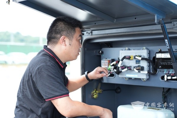 依托服务奥运会、卡塔尔世界杯等国际赛事的成熟经验,苏州金龙构建“三步走”保障体系。一是,前置协同、严苛筛选机制:与客运企业深度对接,精准匹配车型与线路需求,所有车辆经多轮检测,重点排查发动机、制动、底盘等核心部件,确保“零隐患”上岗;二是配件先行:在成都建立专用备件库,核心部件储备充足,实现“即需即供”;三是驻点护航、应急联动:自8月3日起,技术服务团队入驻组委会指定区域,24小时全天候待命,直至8月17日赛事收官,并进行动态监管,每日全车系统检查,重点部位“一车一档”跟踪。