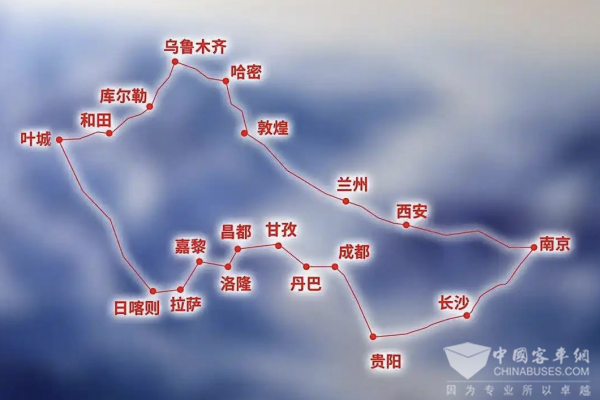 山哥自发的这场针对依维柯欧霸·山海的高原版“终极测试”,计划从南京出发,经长沙、贵阳、成都等地一路向西,入藏至日喀则后再去往叶城,横跨新疆再经敦煌、兰州、西安一路返回南京,全程纵横三万里。