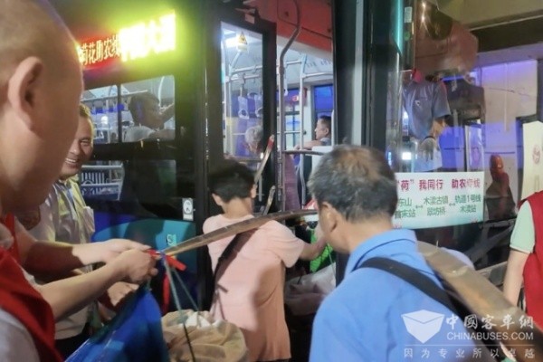 荷花专线采用的苏州金龙蔚蓝纯电动公交,凭借零排放、低噪音特性完美契合古城环保要求。车辆采用了一级踏步设计和宽敞空间,方便荷农携带货物上下车。55岁的乔阿姨高兴地说:"以前挑担子转三趟车,现在只要这一辆专线公交就能直达地铁站,省力又省时。"今年她的销量翻倍,日均收入可达五六百元。