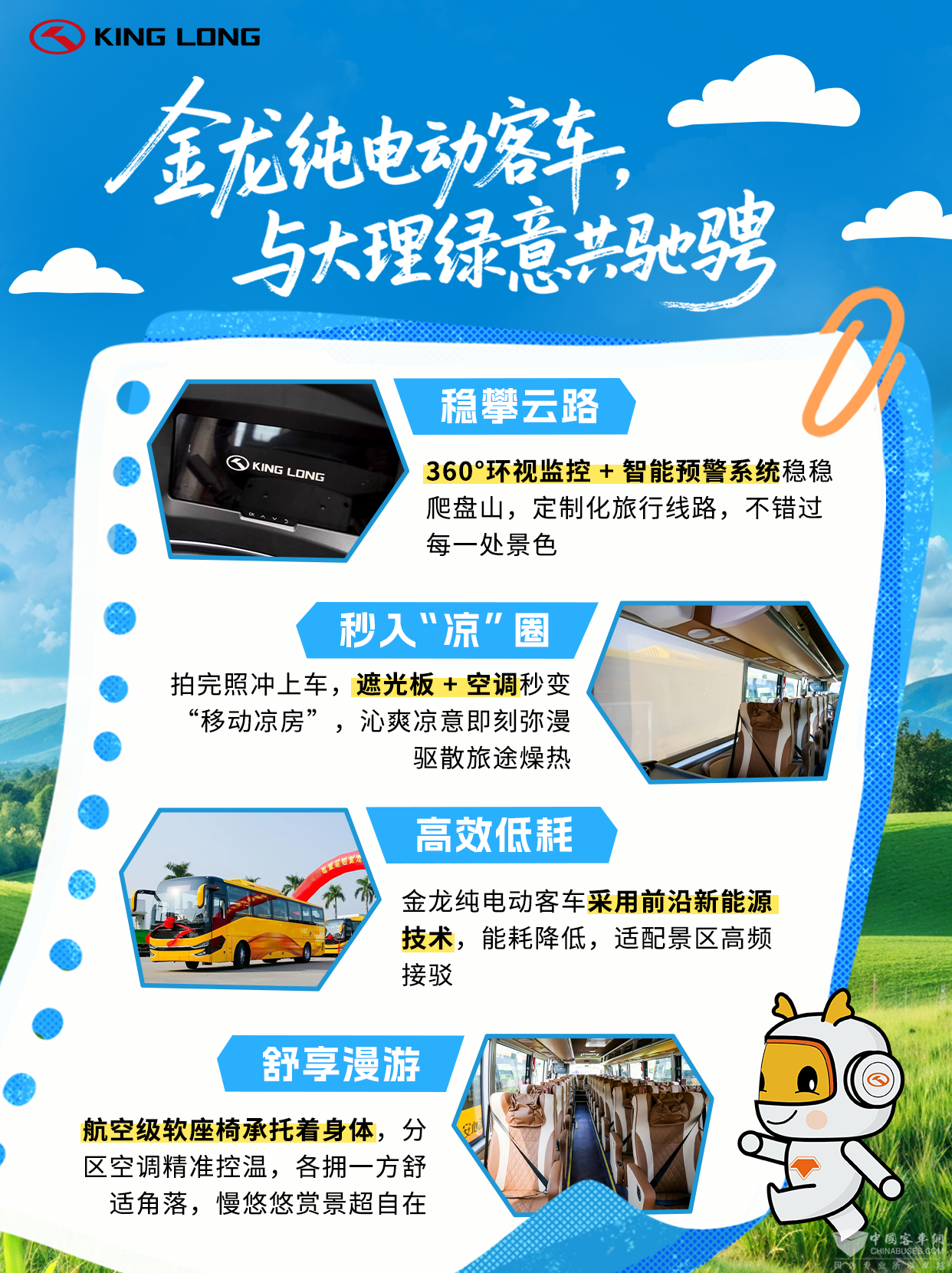 金龙纯电驱动能耗比传统燃油车显著降低,适配景区高频次接驳需求