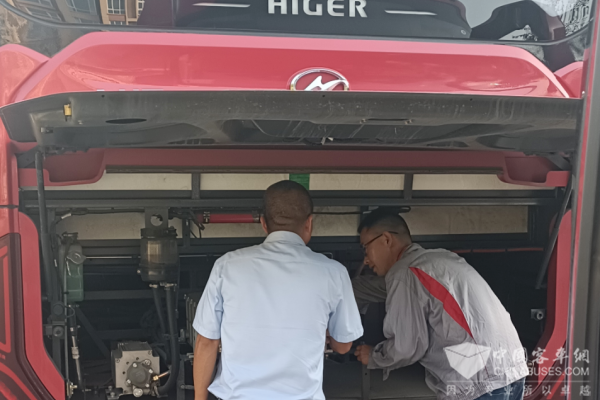 苏州金龙海格客车驻外服务工程师张为城介绍:“从8月初开始,我们就对67辆上会车辆进行全面检查,针对车辆的制动、转向、轮胎等关键部件,仔细排查是否有磨损和松动情况;同时还检查了车内座椅、空调、照明等设施,确保参会人员乘坐舒适,并逐一检测了纯电动客车的电池、电机、电控系统,确保续航和运行稳定。”会议期间,服务保障团队更是开启“24小时全天候服务”模式,确保车辆始终以最佳状态投入服务。