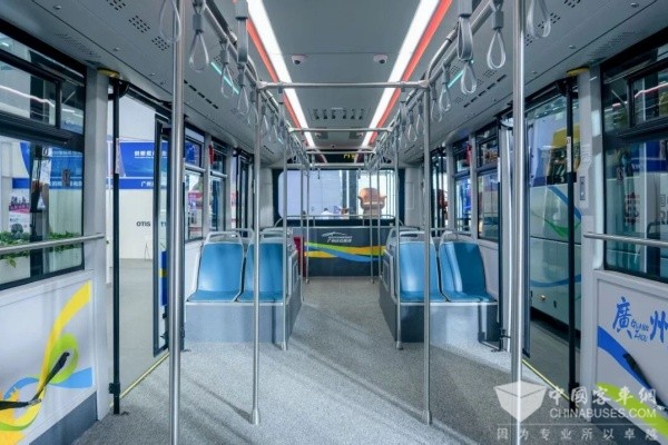 中车新能源机场摆渡车,搭载了中车自主迭代开发的180KW大功率双绕组电机,峰值功率达350KW,匹配高安全磷酸铁锂电池,全平低地板、电动塞拉门、分区独立空调等设计;“鸟笼结构”全承载车身设计,让整车重量更轻、强度更高、承载能力更大;配备360度环视系统,整车15路监控系统,对驾驶区、乘客区以及车外四周全域覆盖,满足行车及泊车等不同场景下无死角驾驶视野。