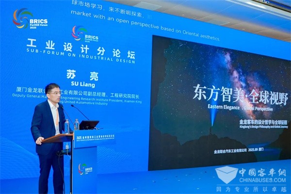 金龙副总经理、工程研究院院长苏亮向参会嘉宾分享金龙客车的设计哲学与全球征程。他说,金龙在开展海外业务过程中,依托产品与服务,满足不同地区用户的出行需要。“未来,金龙将持续探索车辆智能技术与人文设计的有机结合,为更高效、更友好的交通方式提供支持。”