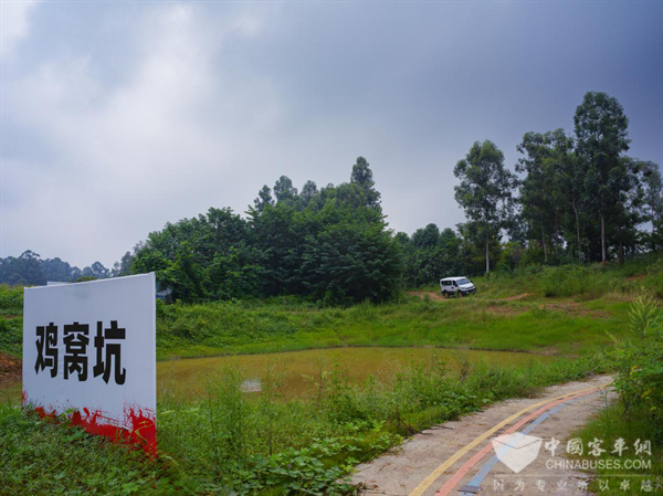 来右转,跟我一起画个龙,再左转,画一道彩虹,走起。从起点出发,经过两个弯道,很快就来到了本场体验营的第一个考点,然后,看着眼前突然凹陷的地面,瞬间,我就得瑟不起来了——鸡窝坑。这路线设计还真是挺“坑人”的,开场就放大招,还让不让人好好地玩耍了。