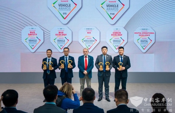 在这场盛会上,中国客车品牌宇通以“Think Eco,Move Green”为主题,携高端纯电动车型及多项前沿技术亮相,并一举斩获“年度最佳客车大奖”、“年度最佳巴士大奖”等七项Busworld大奖,创下迄今中国客车品牌参评Busworld获奖数量的最高纪录。其中,年度最佳客车大奖和年度最佳巴士大奖,均为中国客车品牌在Busworld首次获得,再次为中国制造赢得荣光。