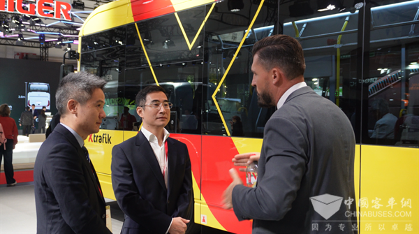 展会首日,金旅客车党委书记、董事长彭东庆接受了记者的采访。刚刚结束与北欧客户的两场会谈,他又匆匆走入新的会议室。“这几天的会议几乎是连轴转。”他笑着说,“但这也说明欧洲客户对中国客车的兴趣与日俱增。”