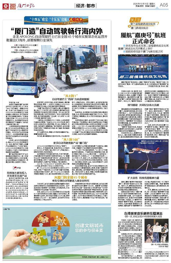十四五收官,十五五启航专题—— 金龙自动驾驶客车畅行海内外