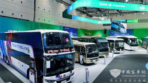 中通客车展出包含城市公交、旅游大巴、高端商务等的11款产品,涵盖纯电动、燃油、天然气三种动力形式;亚星客车面向海外市场发布覆盖6-18米全场景出行需求的客车型谱,推出多元化VAN产品与定制底盘,全方位展示了集团客车为全球用户提供全场景解决方案的能力。