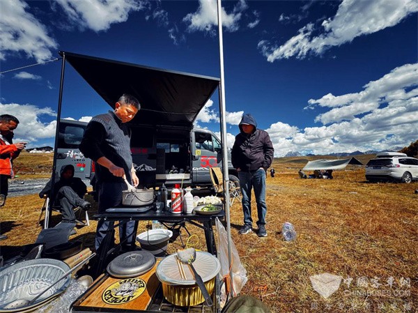 当车辆驶过塔公草原的高原土路,全时四驱系统与全地形轮胎稳抓地面,氮气减震器过滤颠簸,车身始终保持稳健姿态;加装涉水喉的车辆,穿越涉水浅滩毫无波澜,轻松通过。