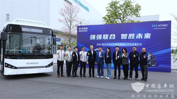 2025年11月3日,开沃集团与现代汽车在现代汽车氢燃料电池系统(广州)有限公司(以下简称“HTWO广州“)举行双方合作开发的首款氢能公交车品鉴仪式。