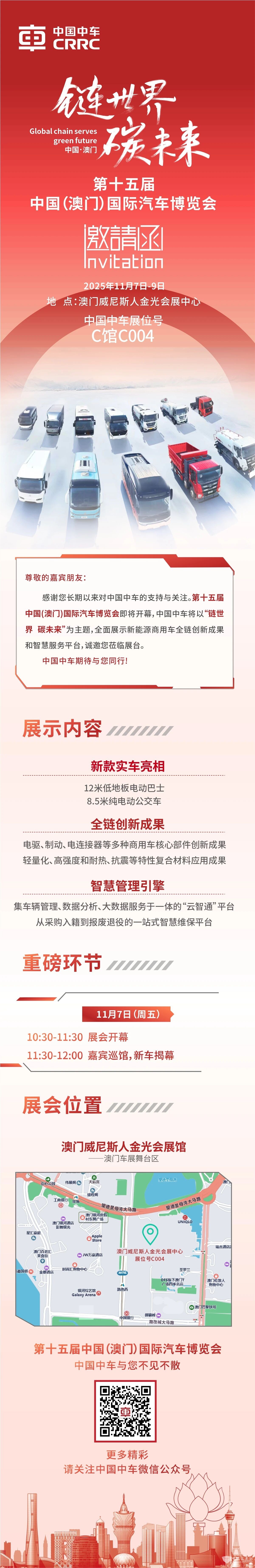 - 澳门国际汽车博览会即将开幕 中国中车发出邀约[11-07]