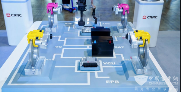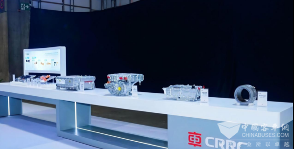 中国中车依托轨道交通装备领域牵引、变流、制动、电控等方面的技术积累,不断推动关键系统和核心部件底层技术创新,实现新能源商用车全产业链布局,本次展会重点展示了电驱、制动、电连接器等多种商用车核心部件的创新成果。