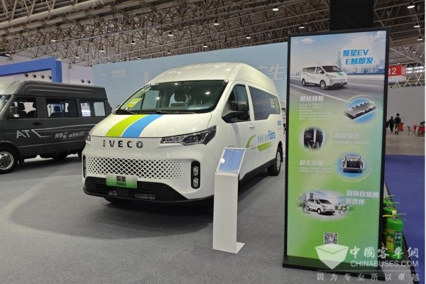 走进南京依维柯展台,就能看到集时尚与智能于一身的依维柯聚星系列产品。它外观前卫,车身线条流畅,还有巨幕全景侧窗,看起来很有未来感,代表着年轻、活力与创新。