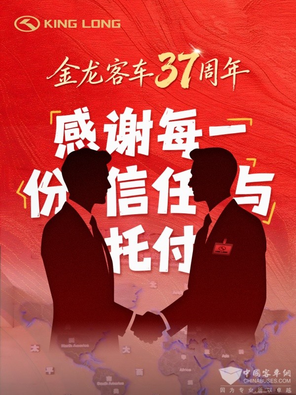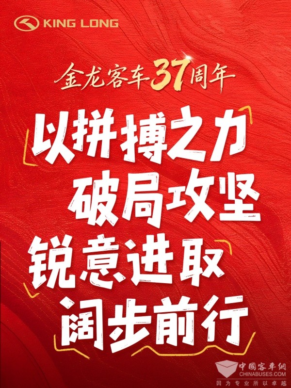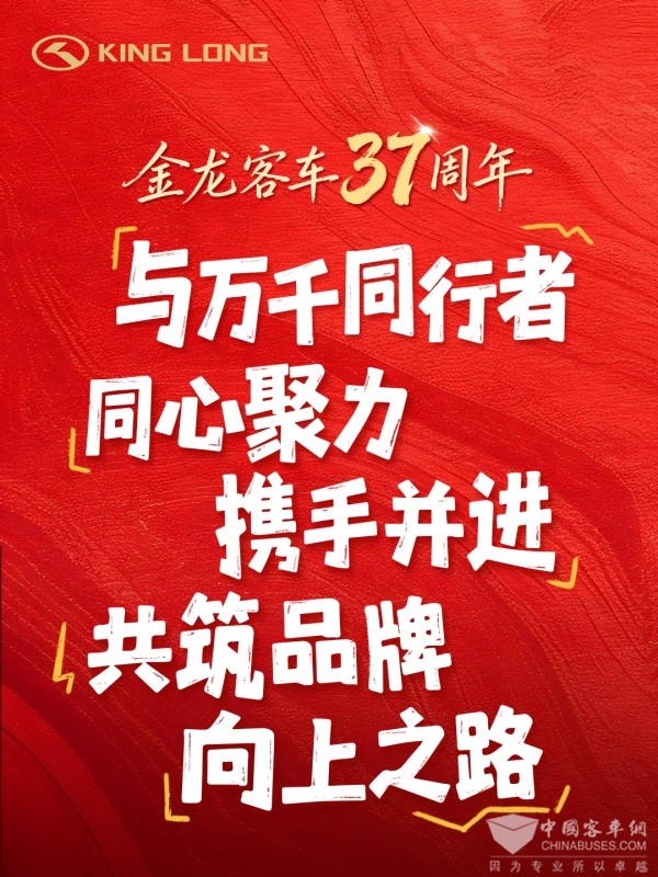 2025 年12月3日,金龙客车迎来 37 周年华诞。回望三十七年峥嵘岁月,金龙实现了从无到有、从优秀到卓越的华丽蜕变。始终高举中国民族工业大旗的它,用三十七年的深耕细作,铸就了享誉全球的中国客车品牌。