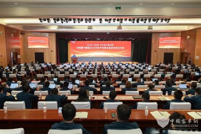 中国重汽集团召开“新征程·谋新篇·势夺首季开门红”2026年生产经营全面启动动员大会,对2026年国内、国际营销目标及一季度开门红工作进行系统部署。要求借势发力、抢抓先机,坚决打赢首季开门红;深耕细分、抢抓订单,坚决冲刺国内更高峰;高端引领、全类出海,坚决打造出口新引擎;全力冲刺、转型突破,坚决抢占发展制高点;客户为本、智慧升级,坚决树牢服务高标杆。