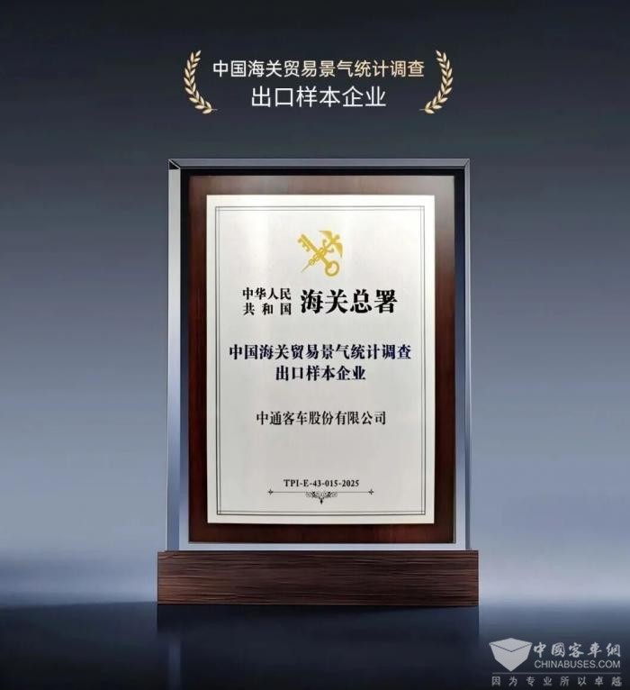 - 中通客车获评“中国海关贸易景气统计调查出口样本企业”称号[01-20]