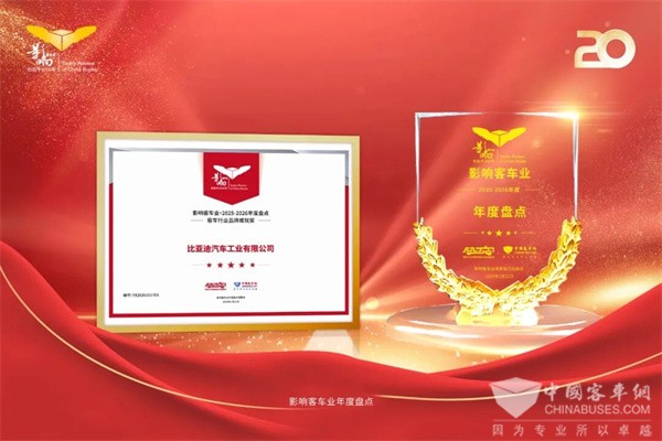 2026年1月22日,第二十届影响客车业年度盘点活动在北京启幕,比亚迪商用车斩获“客车行业品牌成就奖”、“客车技术创新应用成果奖”和“新能源客车推荐车型”三项重磅荣誉。