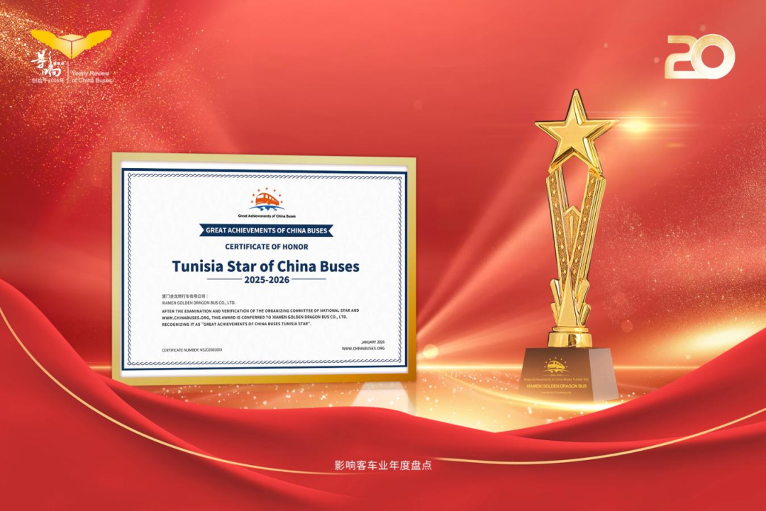 2026年伊始,金旅客车凭借突尼斯462台公交采购项目的突破性成就,一举荣获中国客车海外成就“突尼斯之星”殊荣,该项目不仅是突尼斯历史上最大规模政府公共车辆采购订单,更成为中突“一带一路”交通合作的典范。