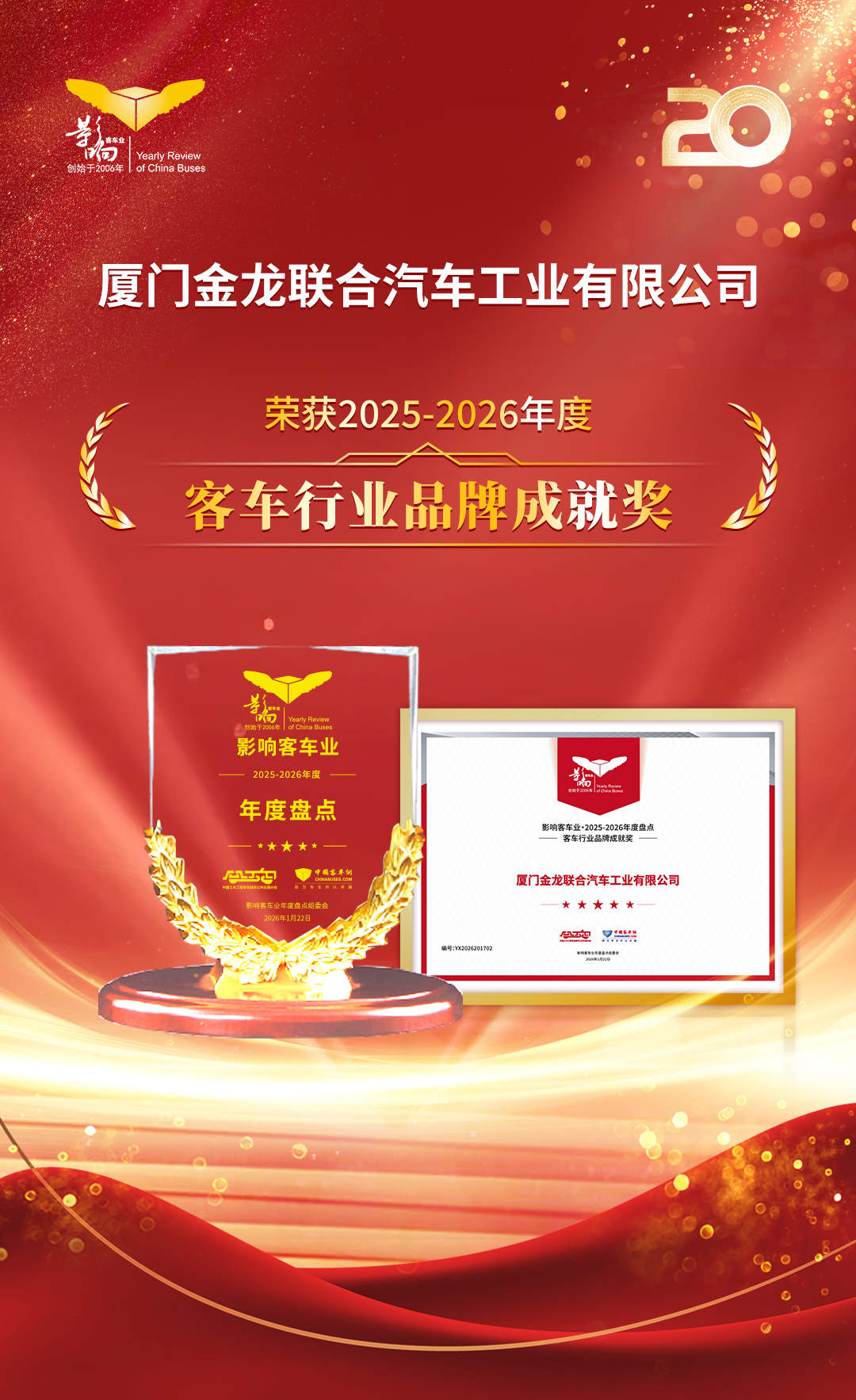 2025年,是“十四五”规划收官之年,也是金龙客车迈向新征程的重要节点。此次斩获2025年度“客车行业品牌成就奖”,源于金龙客车三十七年来深耕行业、坚守品质的执着追求。