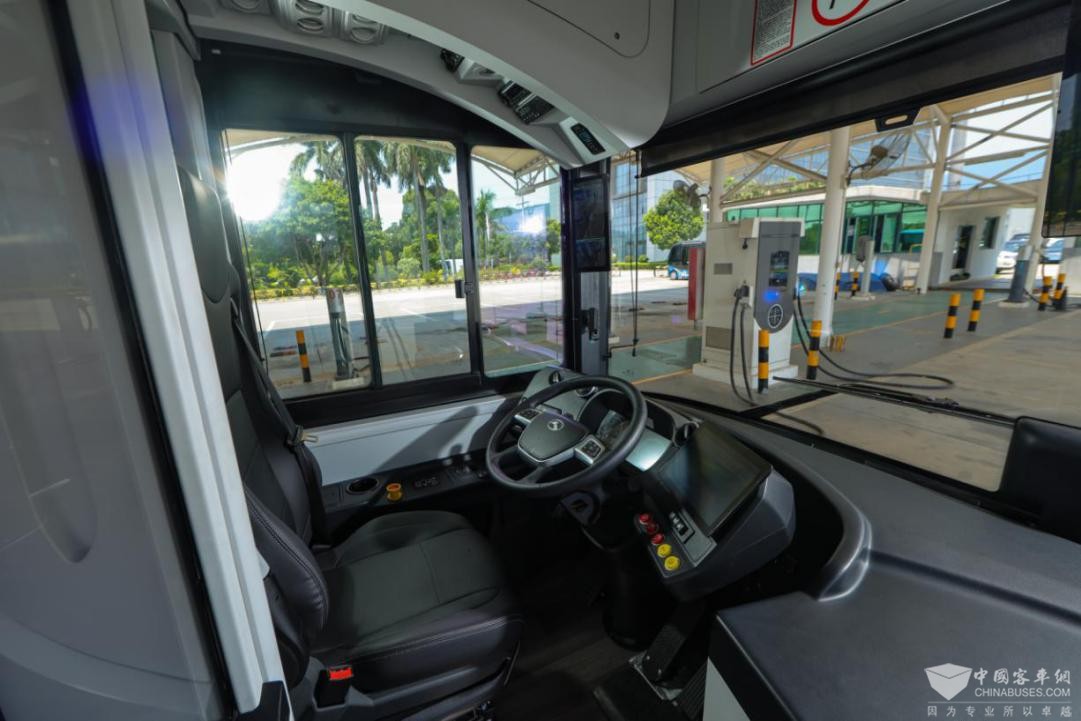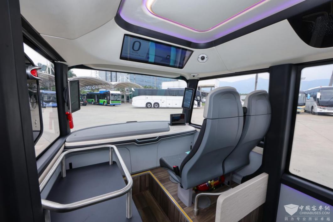 智能座舱的人性化设计是金龙A02的核心优势之一。车辆配备一键启动、烟雾报警、远程对讲、紧急停车按钮等安全配置,烟雾报警与紧急停车功能全方位筑牢安全防线;雨量传感器、座椅重力感应等保障复杂工况与乘坐安全。PAD+29英寸屏幕+车外路牌构建全面人机交互场景,前后气囊悬架+ECAS+线控设计实现车身智能升降,满足无障碍出行需求。