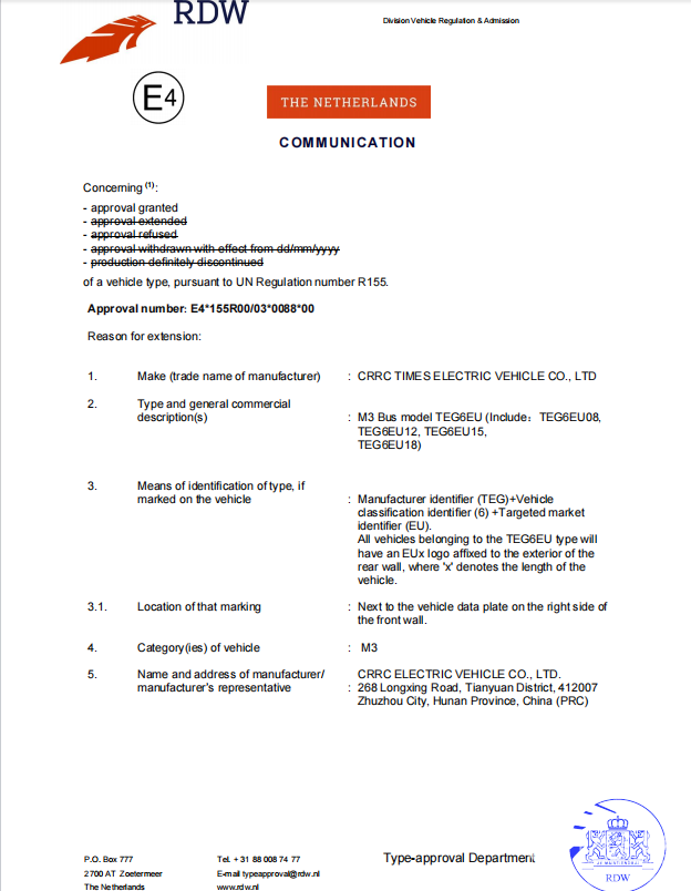 中车电动TEG6EU12作为出口欧盟的高端新能源客车车型,通过合规欧盟 R155/R156 信息安全法规的技术开发与电池大数据安全监测平台的双重赋能,建立了全生命周期安全防护体系,为欧洲市场提供高等级安全保障,助力行业安全技术升级。