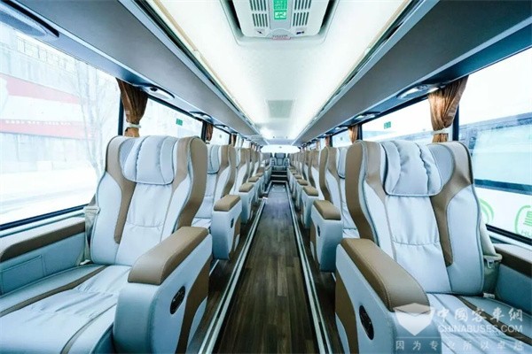 同时,H12N可选装智能座舱,座椅布置涵盖2+2、2+1和1+1,以高端配置解锁旅游新体验,满足多样化的出行需求。全面优化的隔音降噪结构,进一步提升舒适体验,完美适配中长途高端旅游出行、政企通勤、跨境客运等场景。