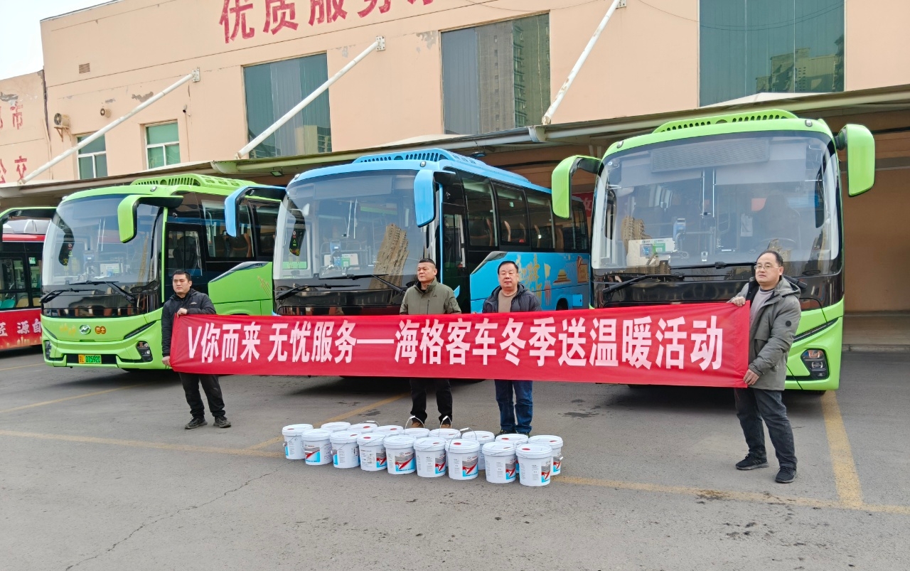 在天气更为寒冷的北部地区,苏州金龙则是开展了冬季送温暖活动,在对新V系等客车进行维保的基础上,海格售后服务团队还特别针对车辆水路等冬天易受影响的部件进行检查,并为客户贴心地赠送了防冻液。2月2日,在甘肃省天水市,苏州金龙上门为天水智慧行旅游汽车服务有限公司的8台新V系客车开展送温暖活动,专业的服务和敬业的精神让客户深受感动,他亲手向海格服务团队赠送了锦旗和手写感谢信。