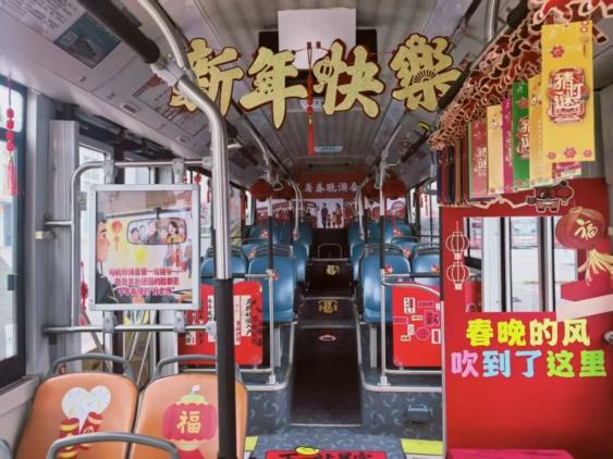 步入136路主题公交中,映入眼帘的是一片喜庆的“中国红”。车厢巧妙融入合肥地标、春晚分会场等元素,传统韵味与城市风采交相辉映,年味浓郁、氛围感拉满。